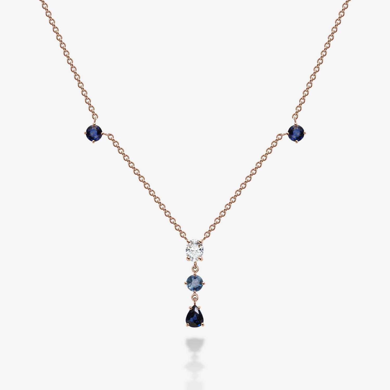 14K rose gold 0.30ct oval shape natural diamond SI clarity G color 0.80ct in total natural blue sapphires chain length 40 cm adjustment hoop at 38 cm